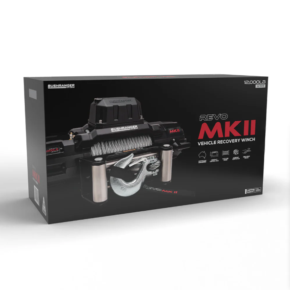 Engineered in Australia to meet the demands of serious off-road enthusiasts who require dependable performance, the REVO MKII defines a new era of unmatched reliability, effortless fitment and operation, enhanced safety, and unparalleled longevity. INCLUDES: REVO MKII winch, wire rope (25m x 10.5mm) with protective sleeve, prewired control box, wired remote control, forged steel hook with pull tag, aircraft grade aluminum hawse fairlead, main power isolation switch, heavy gauge wiring…